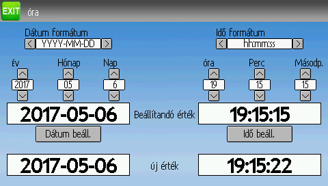 „Óra (csak Devo12)”: Az aktuális dátum és idő beállítása.