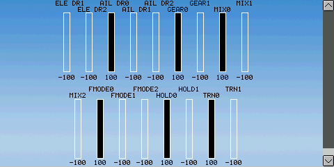 MEGJEGYZÉS: Devo8 esetén csak AIL, ELE, THR, RUD, RUD DR0/1, ELE DR0/1, AIL DR0/1, GEAR0/1, FMOD0/1/2, és MIX0/1/2 bemenetek léteznek.