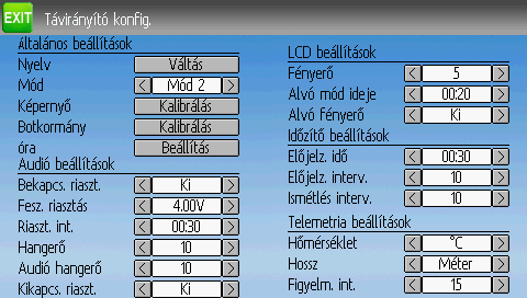 Alvó mód ideje: A képernyő altatásának késleltetése. 5 másodperctől 2 percig állítható 5 másodperces lépésekben. Kikapcsolt állapotban a háttérvilágítás a beállított marad a távirányító kikapcsolásáig.